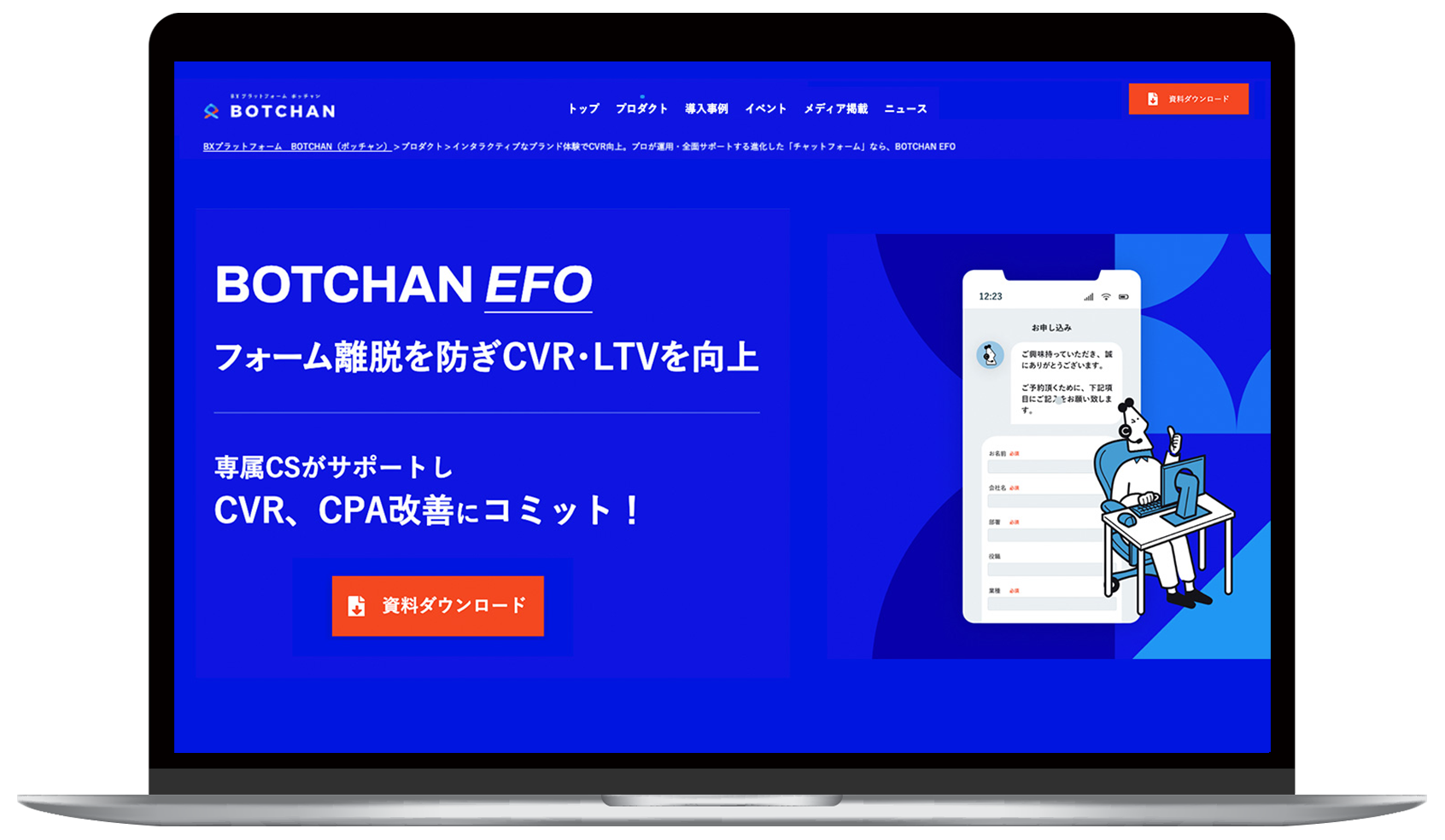 「BOTCHAN EFO」は、金融機関をはじめ、ECサイト、人材、不動産など、幅広い業界での導入実績があり、企業のマーケティング活動における顧客獲得効率の向上を支援しています。